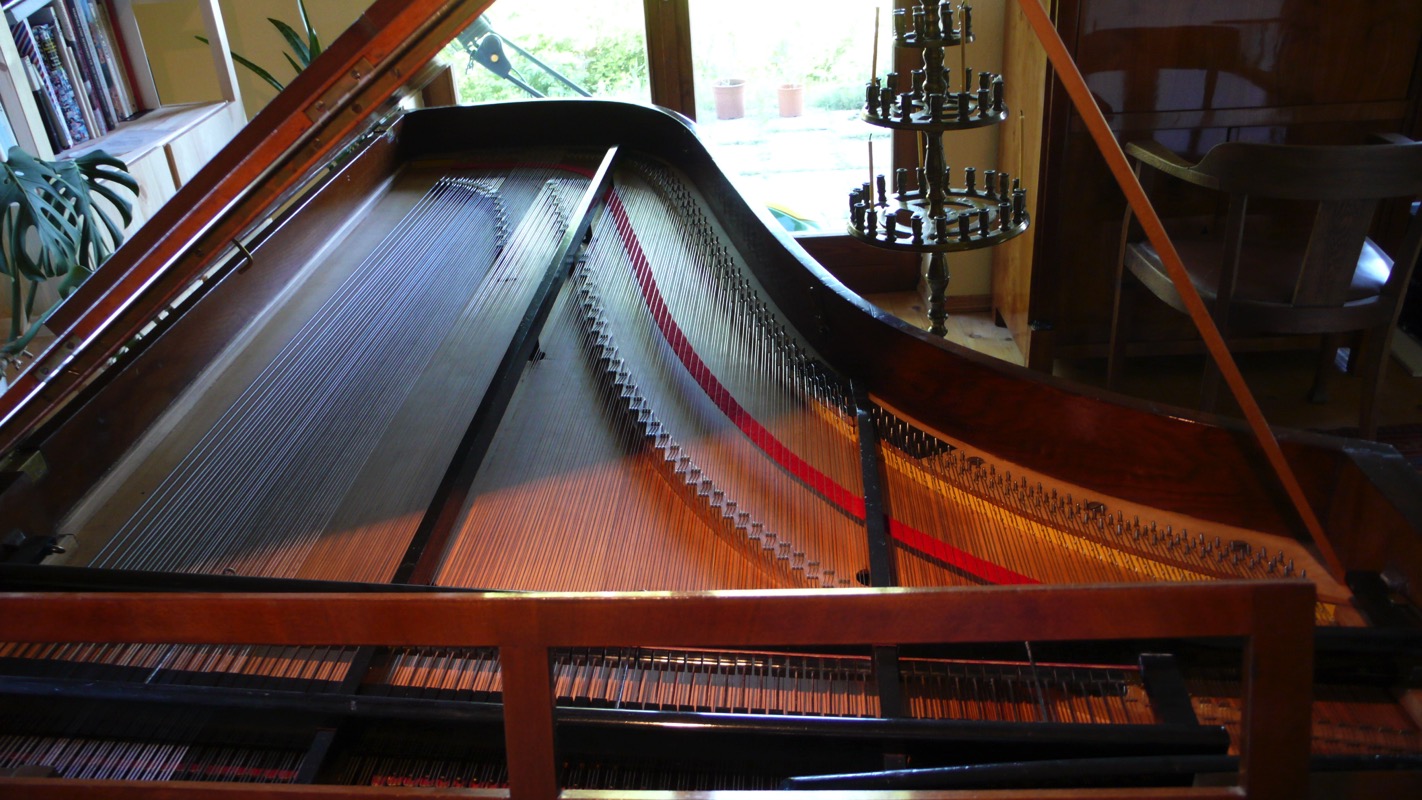 Bösendorfer-Flügel dieses Alters ziehen den Anhang aus dem Rahmen, dieser Problembereich ist im Rahmen der Generalrestauration aufwändig saniert worden. Regulation und Intonation für den Konzertgebrauch durch Firma Fuchs/Salzburg. Die Gerade Seite des Flügels wurde nicht neu politiert.