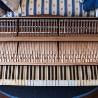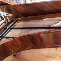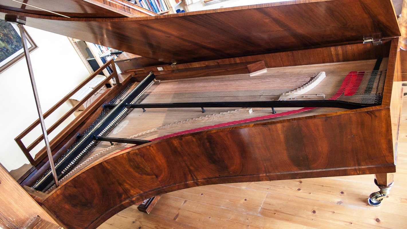 Neubesaitung dem historischen Material eng angelehnt, diese Besaitung und die originalen Hammerköpfe ergeben ein Klangbild, das dem ursprünglichen Klang sehr nahe kommen dürfte. Generalrestauration durch Albrecht Czernin/ Wien.